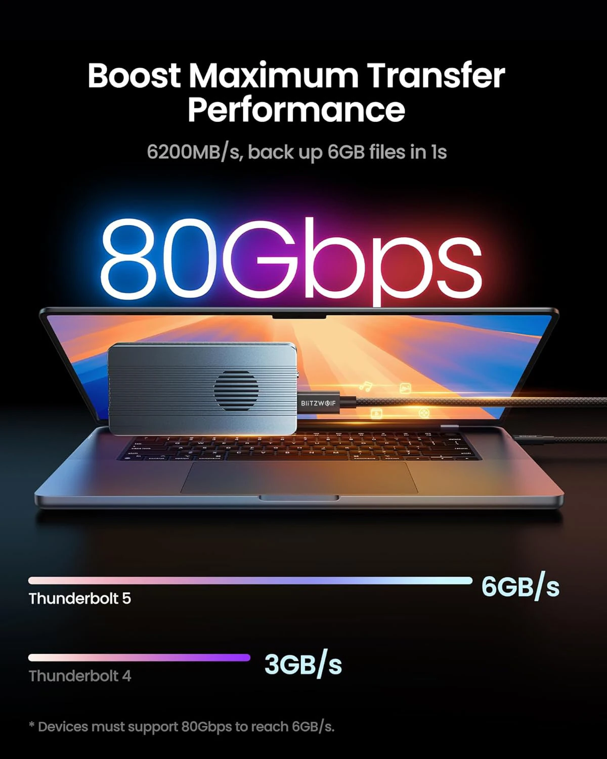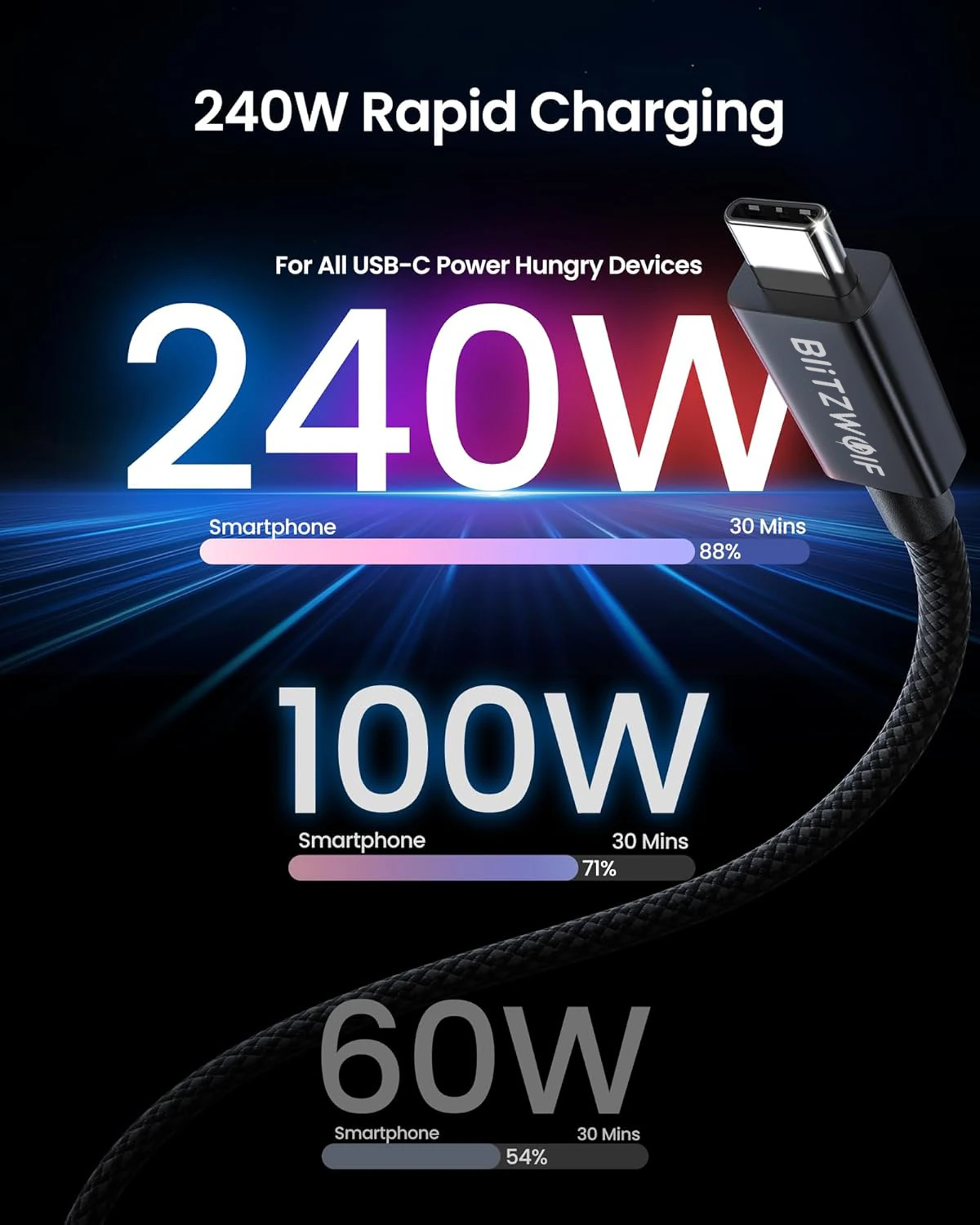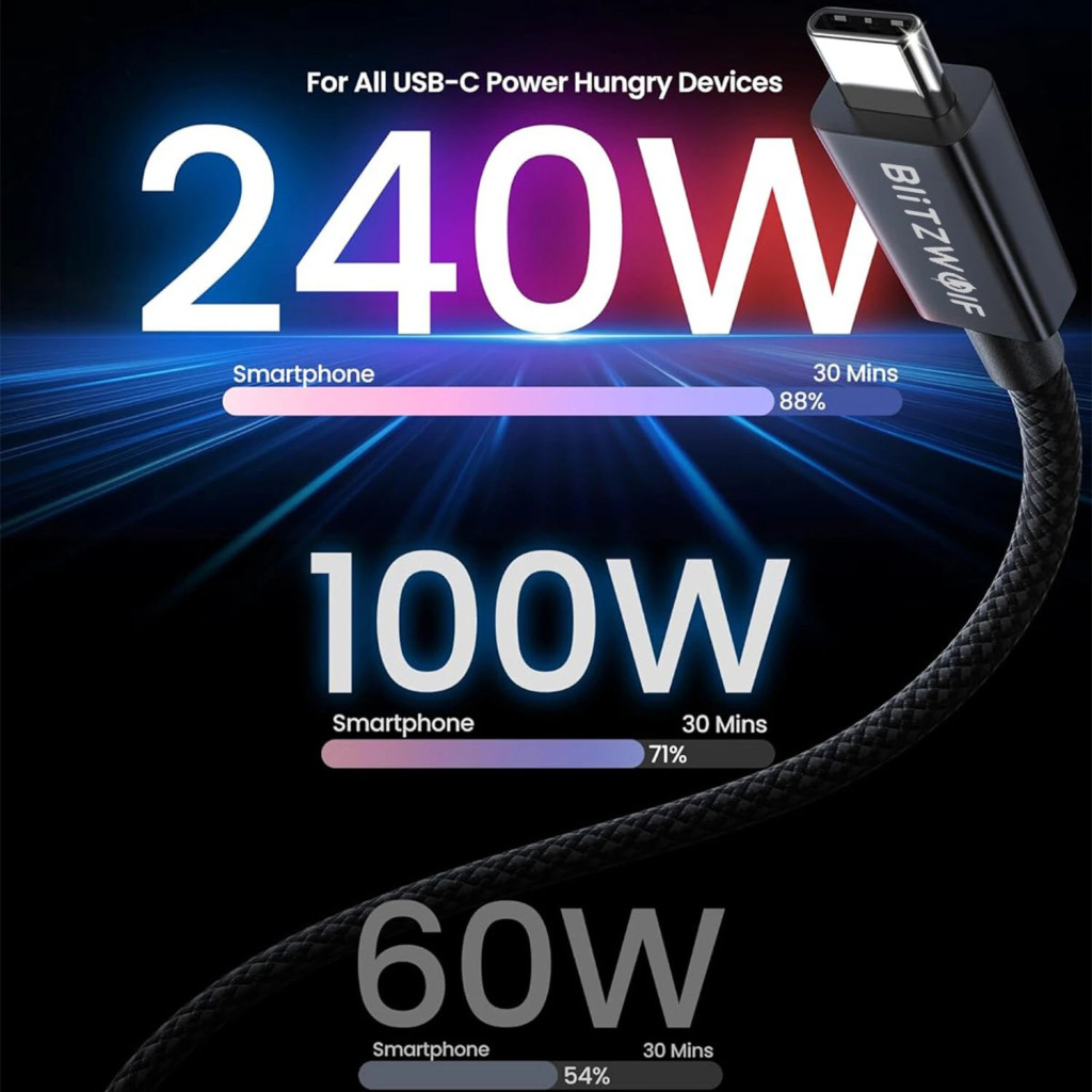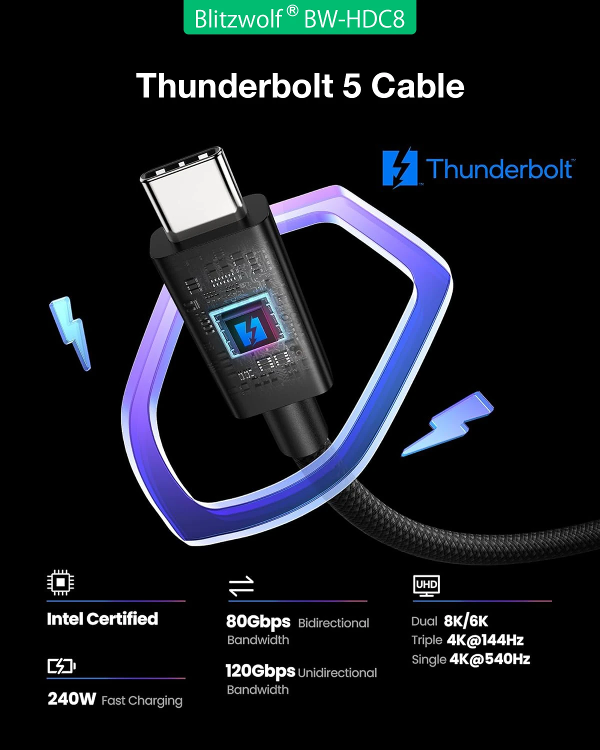 BlitzWolf® BW-HCD8 Thunderbolt 5 je kábel USB typu C, ktorý bude vaším verným spoločníkom po celé desaťročia, čo sa týka výkonu nabíjania, rýchlosti prenosu dát a kvality, či už ide o zariadenia so systémom Windows, Android alebo MacBook. Nie je to len kábel – je to investícia do maximálnej rýchlosti a nekompromisnej efektivity.