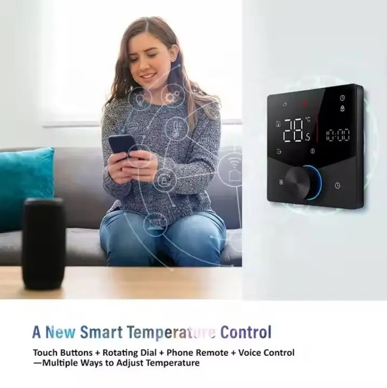 Inteligentný termostat má elegantný, citlivý LCD dotykový displej, bez škrabancov a ľahko sa čistí.
