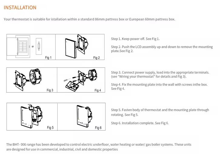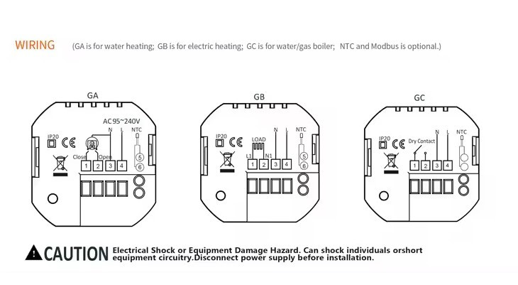 V prípade elektrických vykurovacích panelov, konvektorov, termostatov podlahového kúrenia a ventilátorových ohrievačov je možné priamo použiť 5A termostat. V prípade elektrického podlahového kúrenia môže termostat priamo pripojiť vykurovacie káble, ak ich výkon nepresahuje limit 5 A.